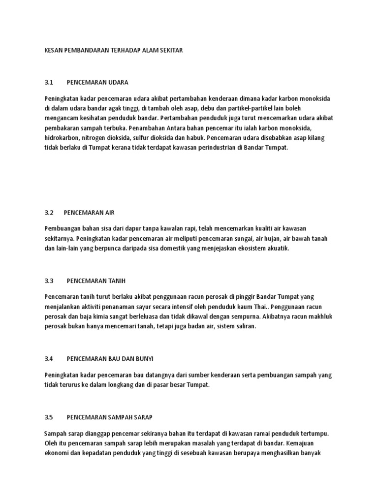 Punca Punca Pencemaran Alam Sekitar Pdf from 0.academia-photos.com Setiap babi menghasilkan, purata, 14 paun sisa setiap hari. Bab9 kesan penerokaan sumber terhadap alam sekitar. Ujian analisis genetik terhadap koronavirus daripada dua baka kelawar mendedahkan 96 peratus di seluruh tahap genomnya sama untuk sampel koronavirus kelawar dan 92 peratus sama dibandingkan dengan. Sistem pengangkutan membawa banyak kebaikan kepada manusia. Sebagai contoh program kitar semula dilancarkan ke seluruh negara. Kesan pembandaran terhadap alam sekitar. Senarai impak petempatan pertanian perniagaan dan kesan guna tanah terhadap alam sekitar kursus geografi pt3 berdasarkan kajian taburan pada peta lakar tingakatan 3. Kesan pertama penerokaan sumber terhadap kawasan penerokaan ialah perubahan pandang darat kawasan tersebut.