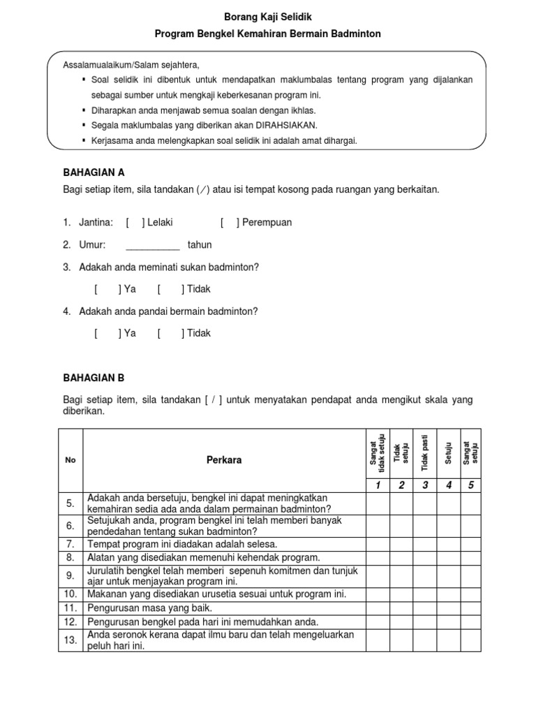 Borang Soal Selidik Program / Soal Selidik Sim 2012 - Sangat perlu perlu tidak perlu tidak pasti.