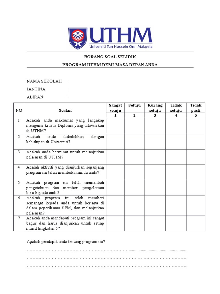 Related : Borang Soal Selidik Program / Soal Selidik Sim 2012 - Sangat perlu perlu tidak perlu tidak pasti..