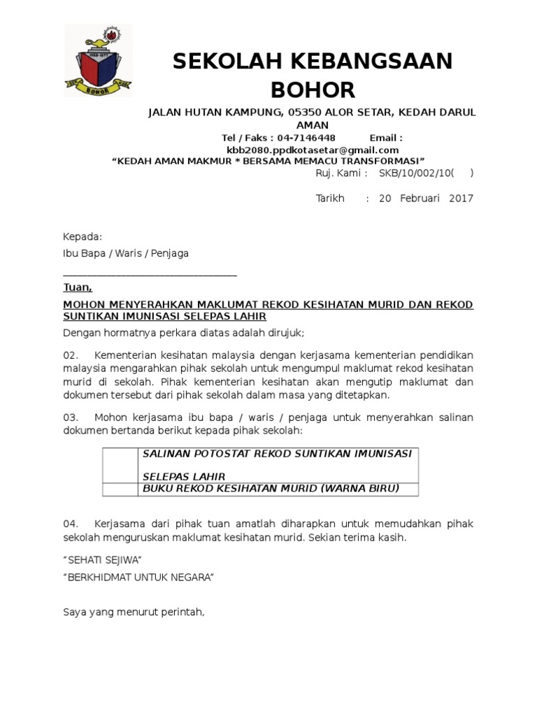 Mereka perlu pergi semula ke klinik kesihatan @ klinik swasta di mana imunisasi telah di ambil semasa bayi 6/12 6/9. Savesave hasil kutipan buku rekod kesihatan murid tahun.doc. Perkhidmatan imunisasi sekolah adalah salah satu perkhidmatan yang diberikan oleh kementerian kesihatan malaysia (kkm) kepada murid di sekolah dalam usaha untuk mencegah penularan penyakit berjangkit. Buku rekod kedatangan murid merupakan dokumen penting di sekolah, guru yang pernah menjadi guru kelas pasti menjaganya dengan teliti, dan guru kelas juga bertanggungjawab dalam mengambil kehadiran murid setiap hari, dan mestilah di catat di dalam buku rekod kedatangan murid, dan kini. Sekiranya buku rekod kesihatan tidak mencukupi guru boleh maklumkan kepada pihak team sekolah. Menyediakan laporan rekod kesihatan murid. Kumpulan sasaran ialah murid tingkatan 3 sekolah ini. Download as docx, pdf, txt or read online from scribd. Perkhidmatan kesihatan secara berkala diberikan kepada murid sekolah bermula dari pra sekolah sehingga murid berada dalam tingkatan 5 ibubapa perlu menandatangani ruangan kebenaran bertulis dalam buku rekod kesihatan murid (rkm). Rekod fizikal murid timbangan dan ukuran. Dokumen yang diperlukan buku rekod kesihatan murid (tarikh imunisasi/suntikan) sijil lahir murid 1.8 menguruskan buku rekod kesihatan (buku biru) dan rekod pergigian murid (kad hijau). Cara pengisisan buku rekod kesihatan murid.